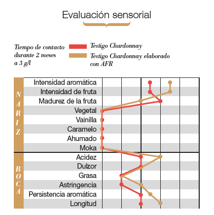 Favorece la manifestación afrutada de los vinos de tipo «Fresco», enriqueciéndolos con notas de frescor y mentoladas, con un ligero aporte de notas de torrefacción.
