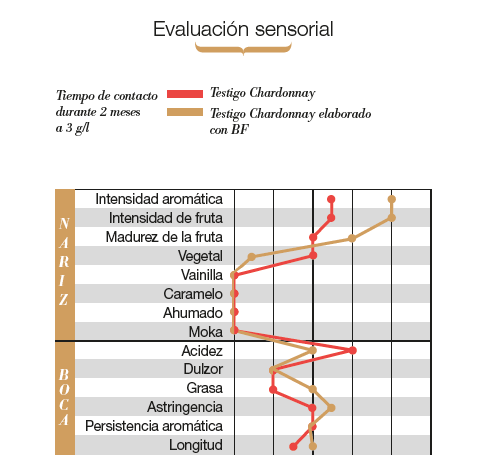 Utilizado durante la fermentación o entre las fermentaciones alcohólica y maloláctica, «BF» aporta grasa, refuerza la estructura y amplía el volumen en boca.