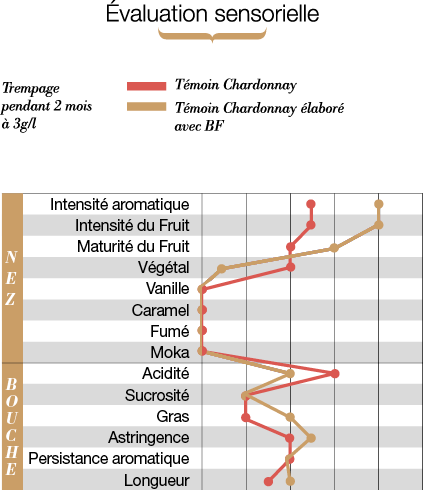 « BF » est composé d’un bois œnologique non chauffé sélectionné selon un ensemble de critères analytiques et organoleptiques spécifiques.