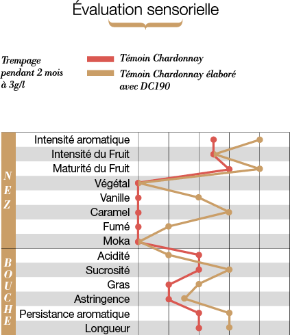 Utilisé entre la fermentation alcoolique et malolactique ou en élevage, « DC190 » modifie peu la structure du vin mais apporte surtout de la rondeur.