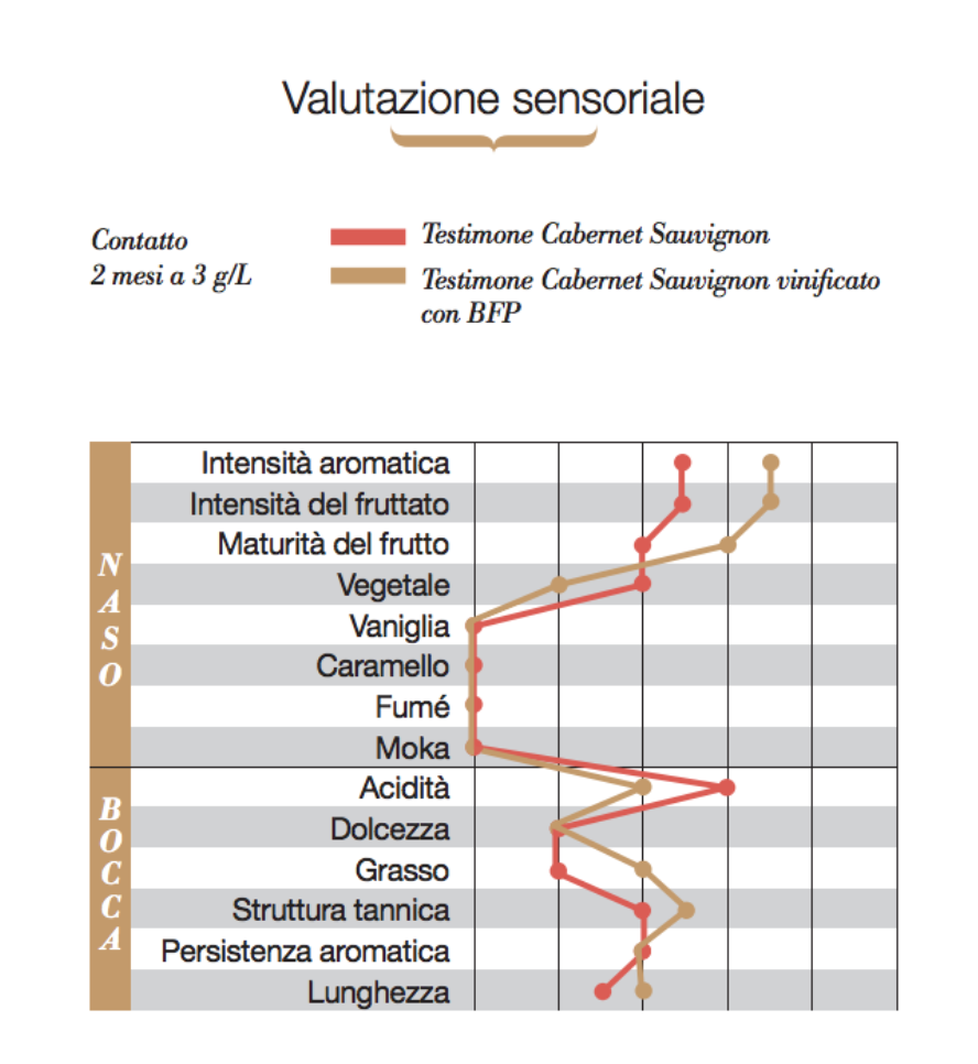 Utilizzato in macerazione o su fase liquida in termovinificazione dei vini rossi e in fermentazione nei vini bianchi, «BFP» apporta struttura, fruttato e volume