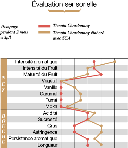 Utilisé entre la fermentation alcoolique et malolactique ou en élevage, « SCA » renforce la structure et amplifie le volume en bouche ainsi que la persistance aromatique boisée.